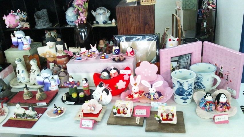 陶器・ガラス・現代ちりめん いろんな種類のお雛様がずらりー